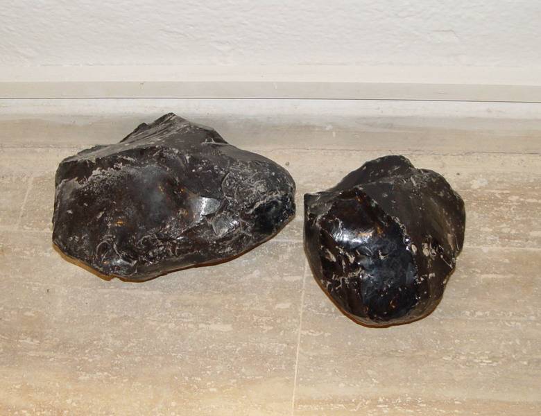 Két óriási obszidián hanyagul hever a múzeum kövezetén