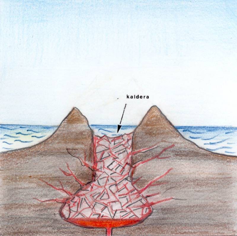 A negyedik fázis; a vulkáni hegy a beomlás következtében eltűnt a föld mélyében, és óriási cúnamit indított el a Kelet-Mediterráneumban (NK)
