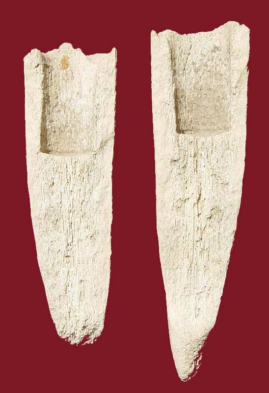 Agancshegy, hosszában kettéhasadva a megmunkálás nyomaival (Kéthalom, Királydomb, korai Tisza-kultúra »Kalicz«, szt)