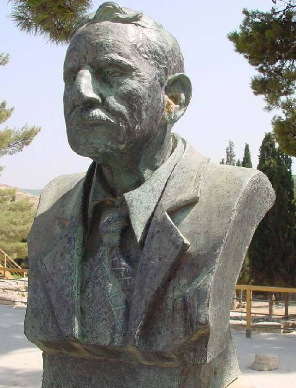 Sir Arthur Evans bronzszobrát a galambok sem kímélik