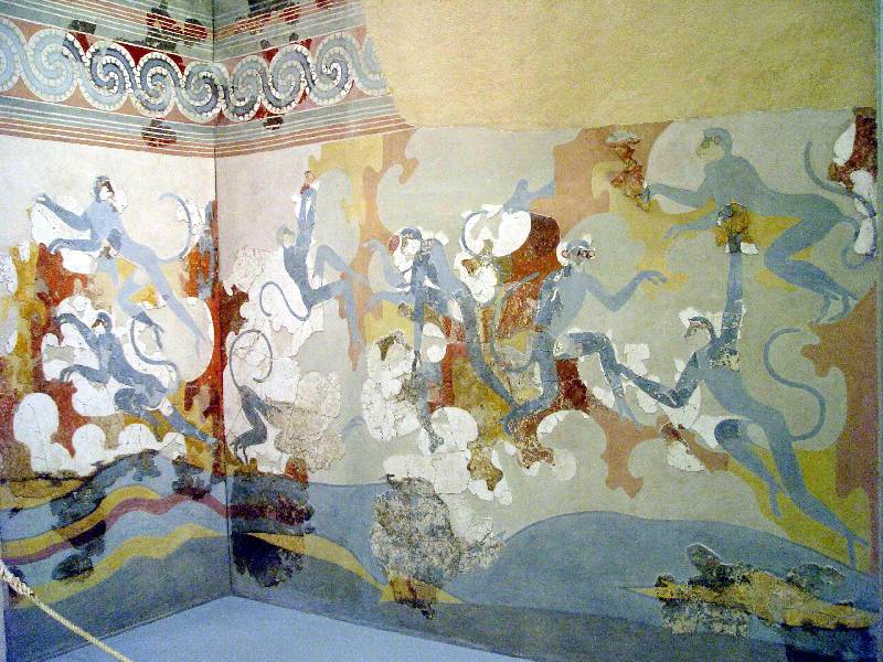 Hancúrozó kékmajmok freskója Akrotiriből származik (FMPT, sz)