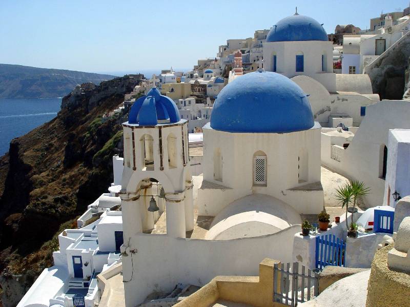 Oia templomait szívesen fotózzák a turisták (Szantorini, sz)