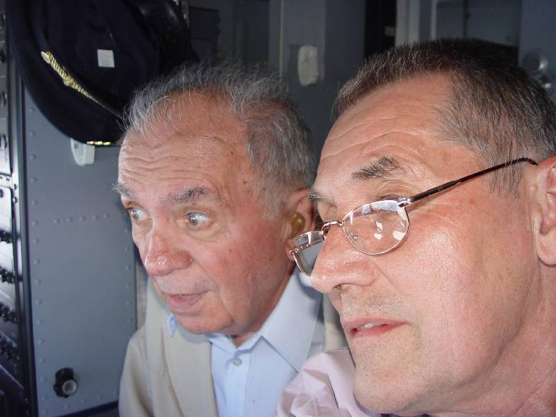Kalicz Nándor professzorral a pilótafülkében a leszállás pillanatában (Szantorini, 2004, sz)