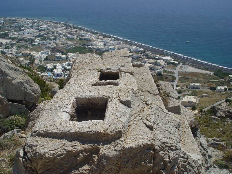 A sziklafaragásokat és lépcsőket a Mesza Vouno hegyen szenthelyként használták az ősök (Szantorini, sz)