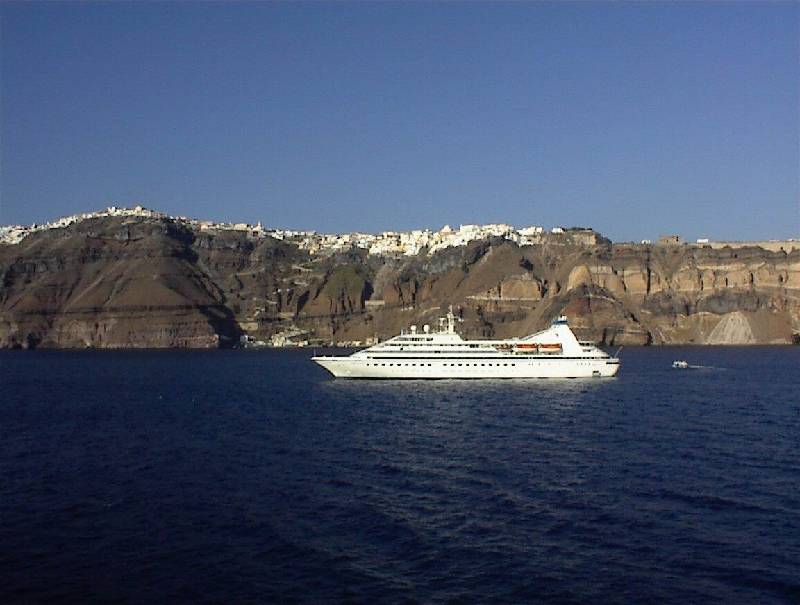 A kalderafalban jól látszanak a korábbi vulkanikus kitörések rétegei (Nea Kameni, sz)