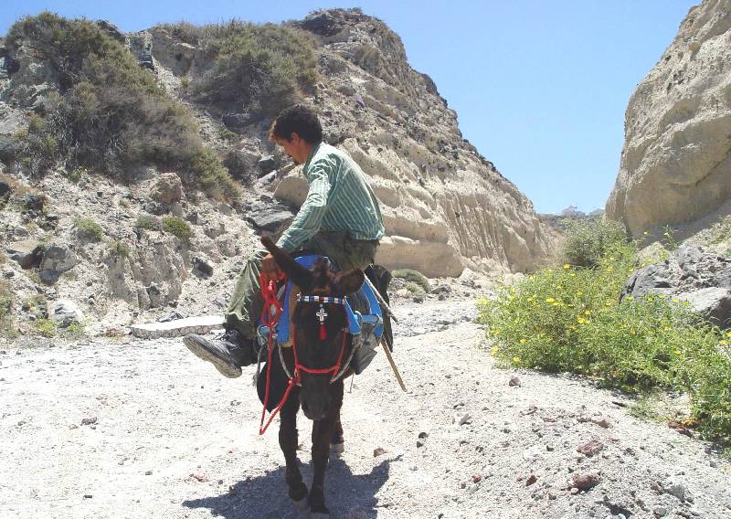 Botorkáló görög szamárháton a „kanyonban” (Szantorini ÉK; Orihia, sz)