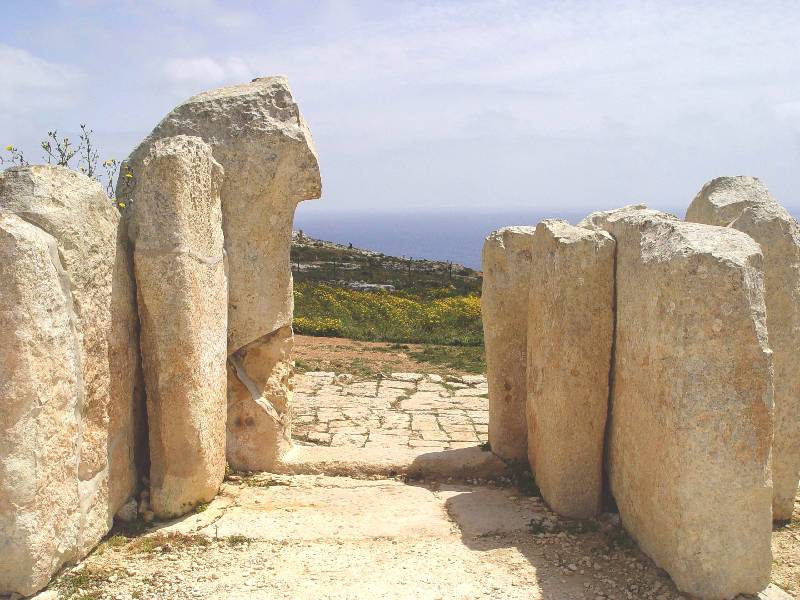 Mnajdra főbejáratánál gyönyörű panoráma nyílik a Földközi-tengerre (Málta, sz)