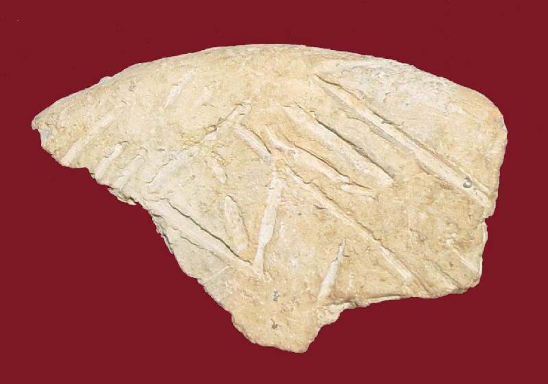 Karcolással díszített, korong alakú edényfedő töredékes része. Sokáig abban a hitben éltem, hogy írásjelekkel van dolgom. Sajnos a cserép töredékes mérete nem teszi lehetővé ennek igazolását. (Kéthalom, Tisza-kultúra, »Kalicz«, szt)