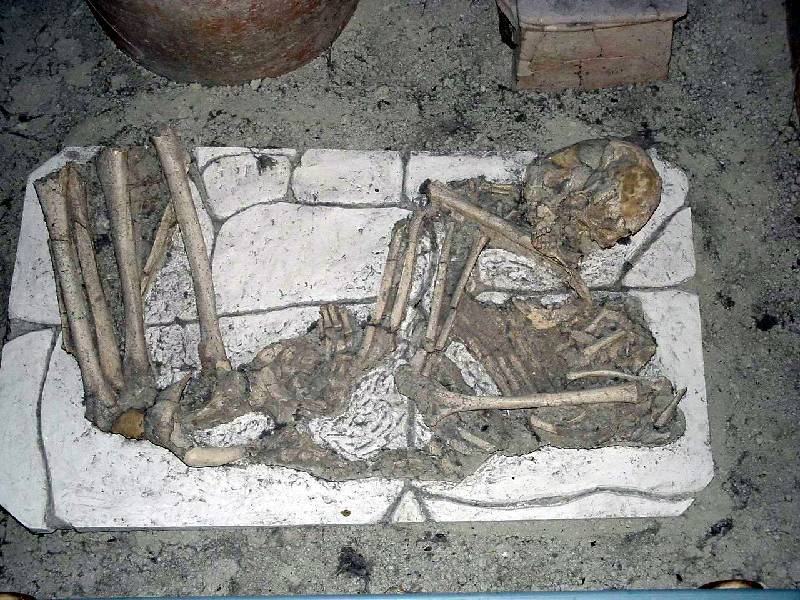 „Áldozati gödör” Archaneszben. A részletes vizsgálatok megállapították, hogy a csontváz egy körülbelül 18 éves férfié lehetett. A lábát magzati pózba felhúzták. (ARM, sz)